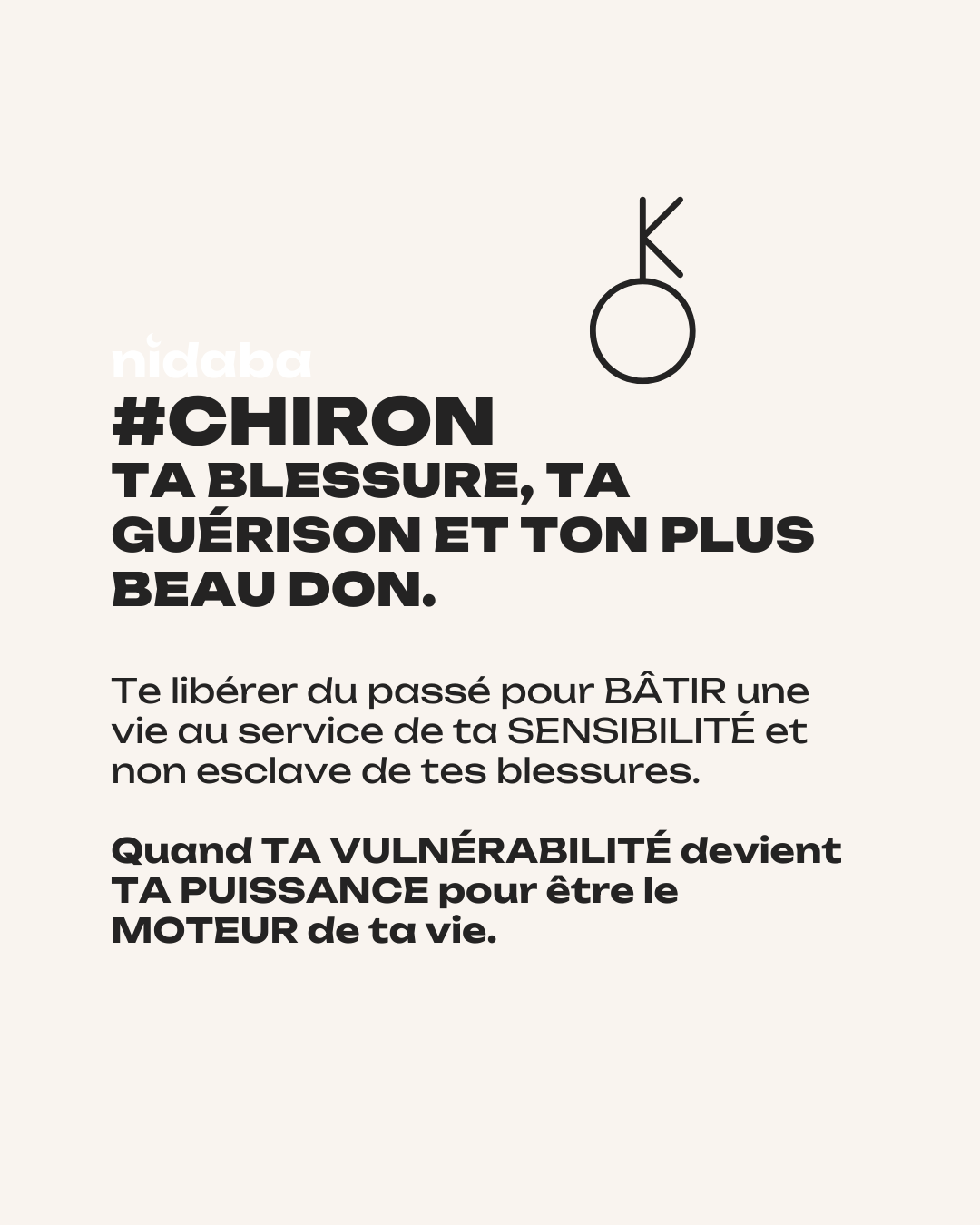 L'accès à ta véritable puissance : ton potentiel est immense, mais il est caché sous tes blessures. En travaillant avec Chiron, tu vas non seulement guérir, mais découvrir le don unique que ta blessure t'a offert.
